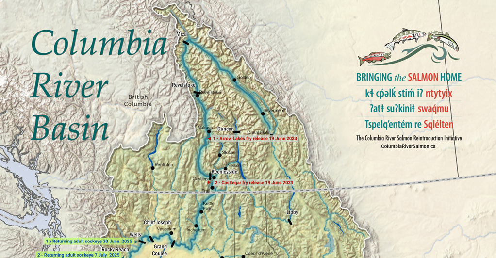In that time, salmon have been unable to reach the Columbia River’s headwaters in southeastern B.C., blocked by the Grand Coulee Dam. Through the Indigenous-led Columbia River Salmon Reintroduction Initiative, two tagged sockeye released as fry in 2023 were tracked returning to the Columbia in 2025.